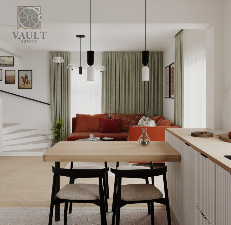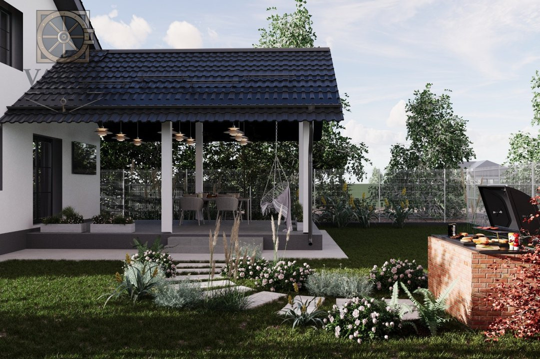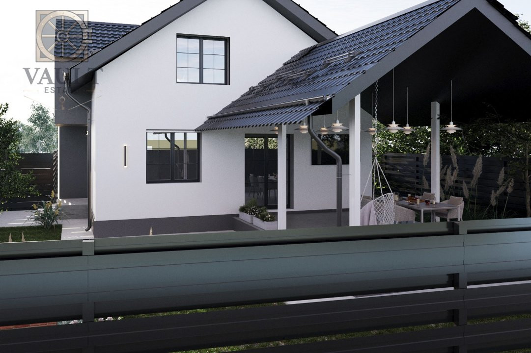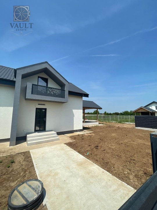 Casa construita in 2025, structura rezistenta beton, acoperis tabla, curent trifazic, apa, canalizare, gaze, contor apa si gaz, incalzire centrala termica individuala gaz cu condensare ferestre tamplarie VEKA PVC 7 camere (culoare nuc) si geam tripan Saint Gobain, feronerie Roto, termosistem placare exterioara cu polistiren grafitat 10 cm, pardosele izolate cu covor din pluta si acoperite