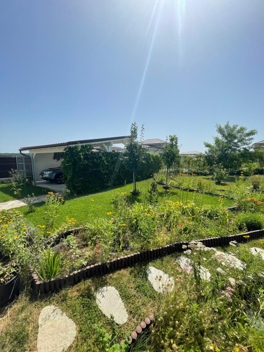 Casa construita in 2018, structura rezistenta beton, acoperis tabla, curent trifazic, apa, canalizare, gaze, contor apa si gaz, incalzire centrala termica individuala gaz cu condensare si calorifere, usi intrare si ferestre tamplarie VEKA PVC 7 camere (culoare nuc) si geam tripan Saint Gobain, feronerie Roto, termosistem placare exterioara cu polistiren grafitat 10 cm, pardosele izolate cu covor din pluta si acoperite cu parchet Kahrs colectia Da Capo, ferestre prevazute cu plase contra insectelor si jaluzele interioare Mobexpert, bai dotate cu placi ceramice si mozaic Rondine, mobiler Mobexpert, sanitare Ideal Standard Belgia si baterii Grohe, usi interior celulare, A/C Samsung 12000BTU, sistem de alarma